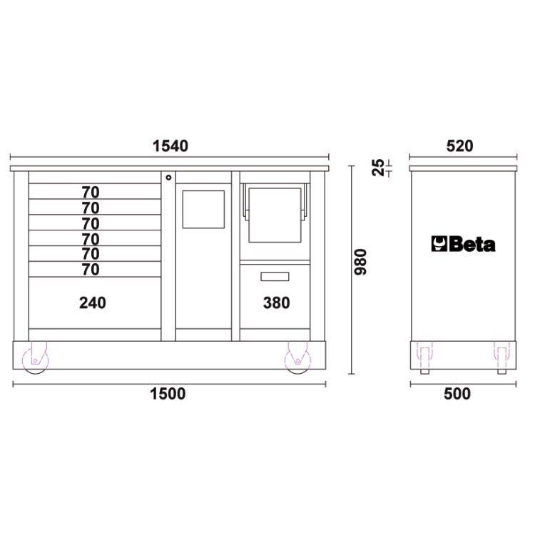 • 1 grote lade (420x305x270 mm)