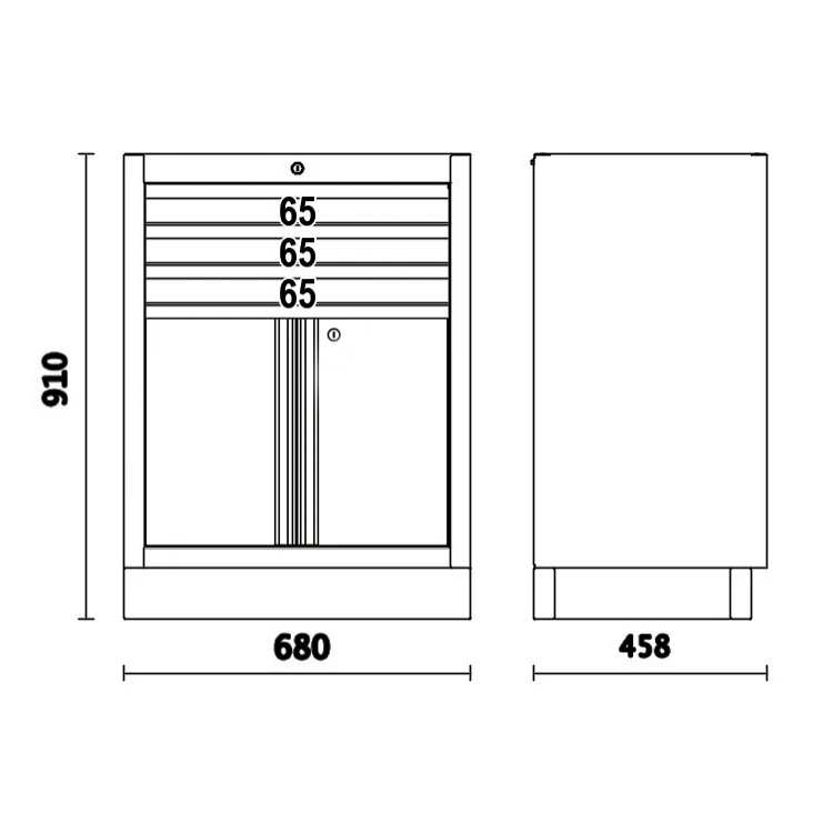 Vaste module met 3 laden en 2 deuren, voor werkplaatsinrichting combinatie C45PRO 2.0
