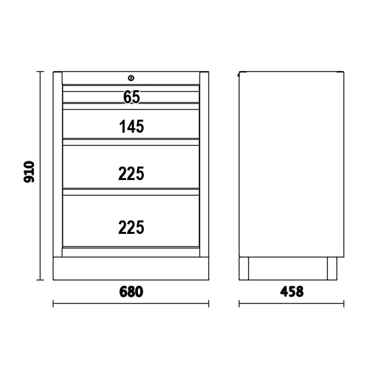 Vaste module met 4 lades, voor werkplaatsinrichting C45PRO 2.0