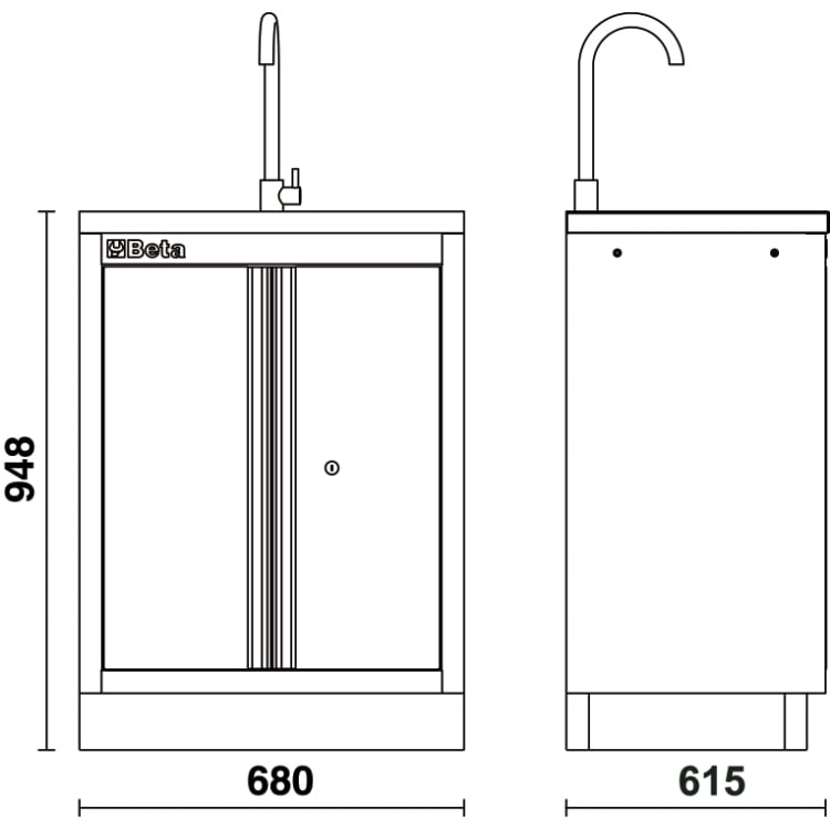 Vaste module met ingebouwde spoelbak, voor werkplaatsinrichting C45PRO 2.0