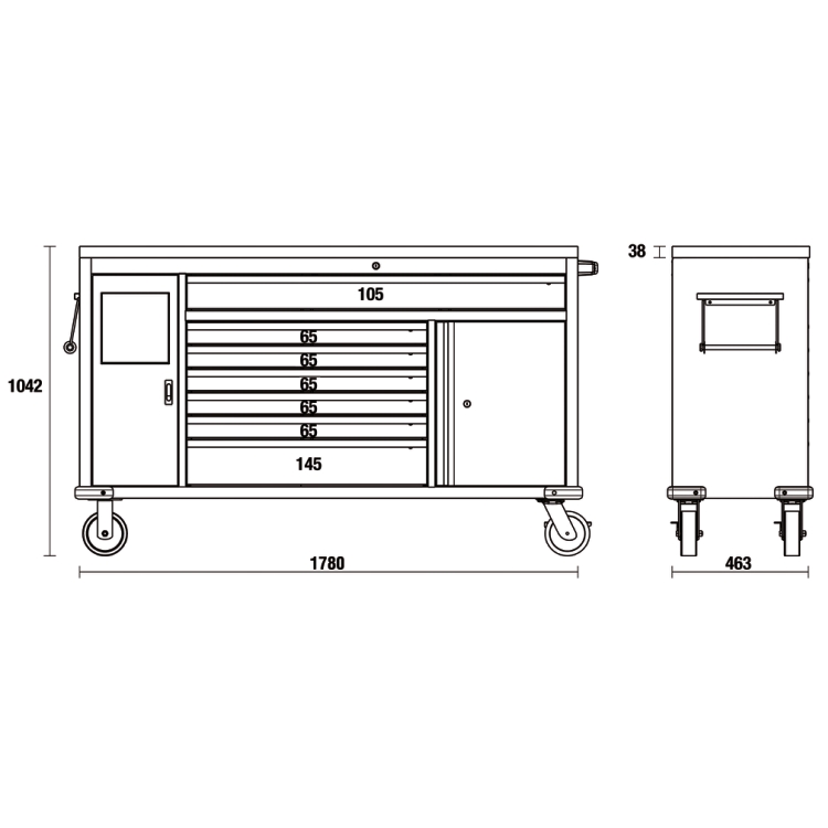 Verrijdbare werkbank met 7 laden en ingebouwde afvalbak